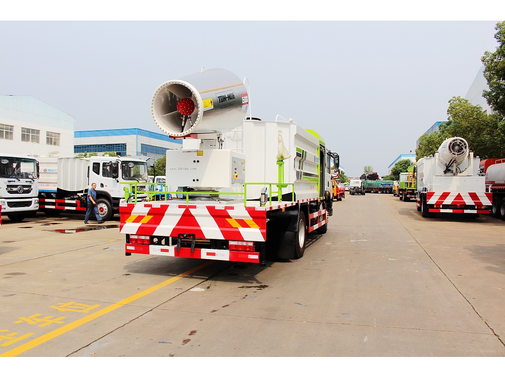 | 配置說明 | 霧炮機具有自主**技術,**號為(201621305361.8 / 201630487869.3),十五年制造經驗,產品全面通過湖北省及本地質檢局檢驗合格,可根據需求選配不同的射程規格,可遠程無線遙控操作作業,采用國內外知名發電機組及風扇電機、電控系統、大功率水泵。抑塵車具有灑水車的全部功能:前部沖洗路面噴灑裝置、后部扇形降塵噴灑裝置,兩側噴灑裝置,后部大工作平臺、平臺上安裝綠化灑水炮(炮噴射形狀可調),可調直沖狀、大雨、中雨、毛毛雨,可連續調節,其它:自流閥及消防接頭、水管3米2根,罐體防腐處理。 | |