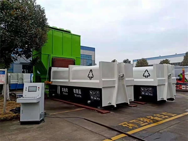 分體式垃圾站(也叫作一機兩箱式垃圾中轉站,也可一機配多箱),分體式垃圾站的垃圾壓縮裝置釆用水平壓縮工藝,將垃圾壓縮后推入設備前端的大容量垃圾集裝箱體里面;小型的分體式垃圾站日處理量可達120-200噸左右;中型的分體式垃圾站日處理量可達150-300噸左右;大型分體式垃圾站日處理量可達300-600噸左右。