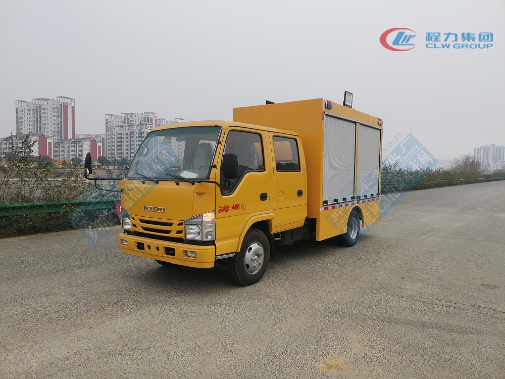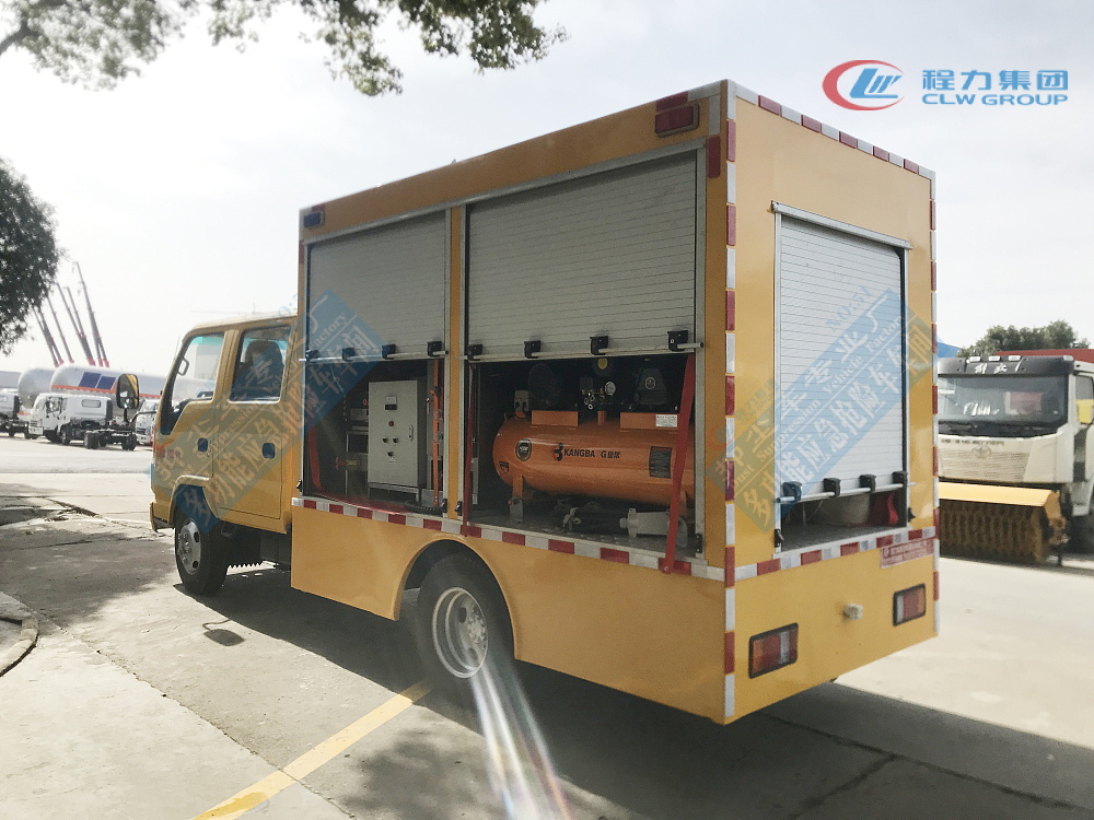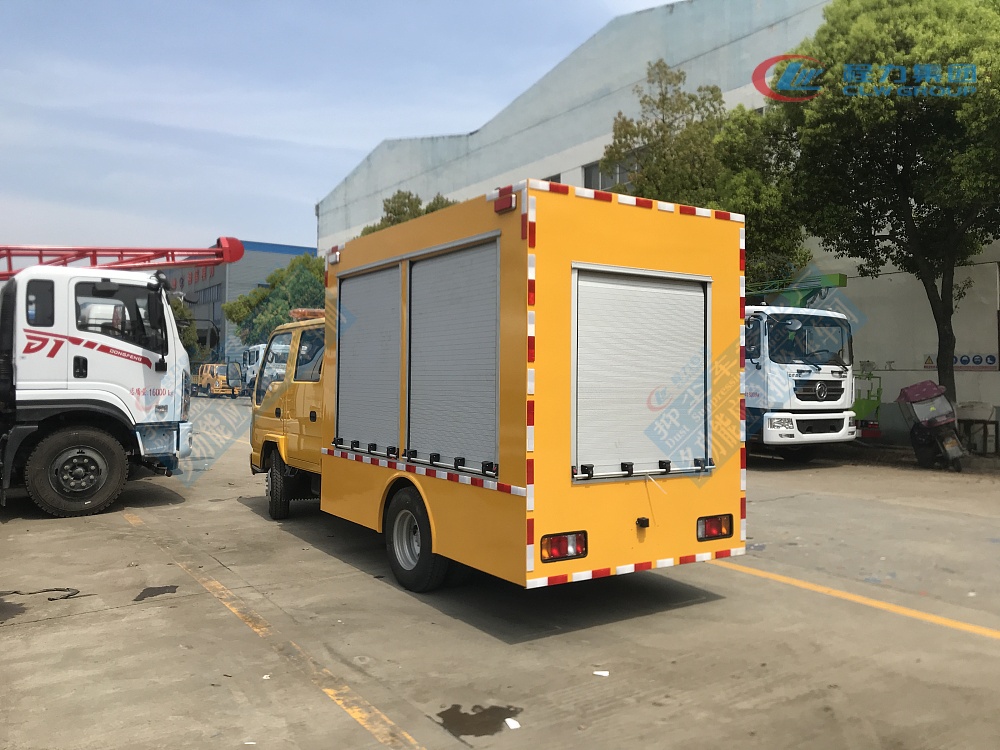 選裝配置:選裝行李架、爬梯、車頂工作臺;選裝不同形狀、結構的**示燈;選裝中隔斷(可選擇開門)、車身兩側可選開上掀門、盲窗、側開門;花紋鋁板;加裝設備工具柜、配電箱、發電機組、水泵、電焊機、空壓機等線路安裝外接電源系統、(室內燈光照明、探照燈、高桿照明燈等);繞線盤,還可根據用戶不同需求加裝不同的維修搶險設備、車身制作專用圖案或標識。